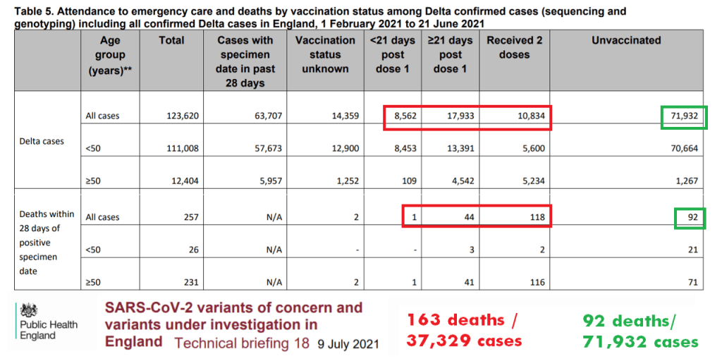 The inefficacy of the vaccines are obvious several months later. By June, 60% of deaths in England due to the Delta variant are vaccinated persons: