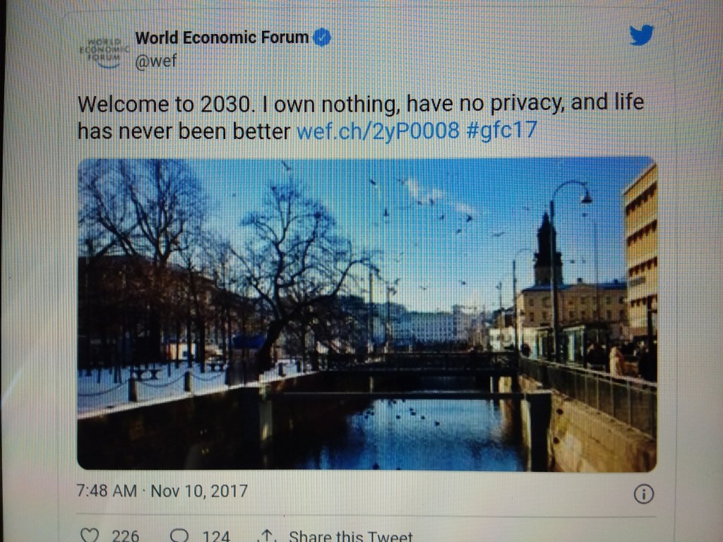 When people don’t own anything, they depend on the government for everything and they are no longer in control of their lives. The campaign is a deceptive, milk and honey approach to get people used to what’s coming.