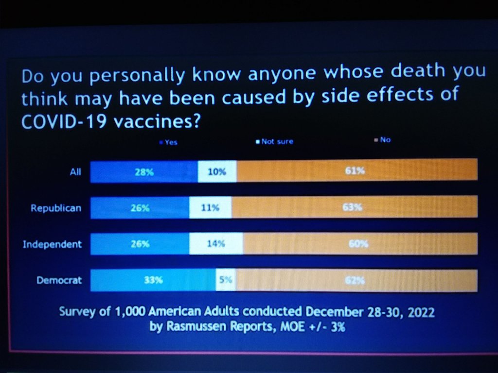 A survey, conducted in December 2022 found that 28% of Americans knew someone, who they believed died from the vaccines.