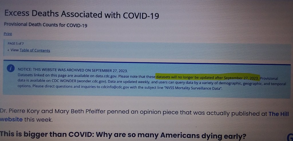 The CDC no longer reports excess deaths, associated with Covid-19.